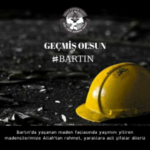 Bartın’da yaşanan maden faciasında yaşamını yitiren madencilerimize Allah’tan rahmet, yaralılara acil şifalar dileriz.