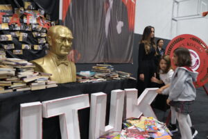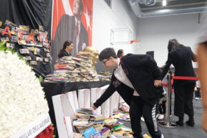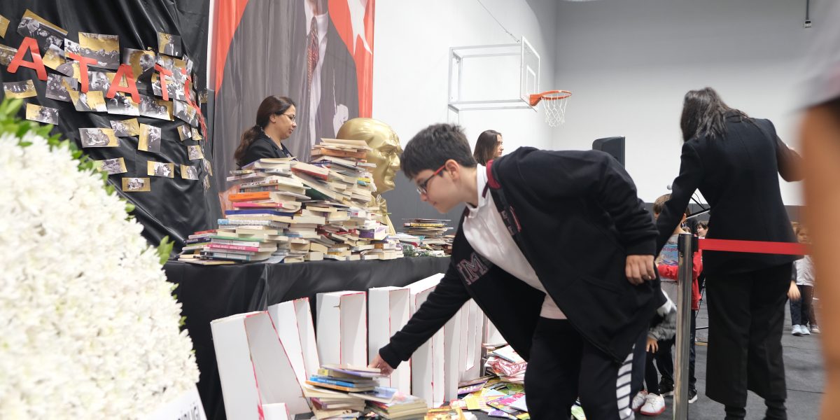 Başöğretmen Mustafa Kemal Atatürk’ün aramızdan ayrılışının 85’inci yıldönümünde Kapalı Spor Salonumuzda gerçekleştirdiğimiz törende, Atatürk büstümüze her yıl olduğu gibi bu yıl da tüm öğrencilerimiz, öğretmenlerimiz ve çalışanlarımız birer kitap bıraktı. Toplanan kitaplarımızı, Atamızın eğitime, okumaya verdiği öneme dikkat çekmek, bu yolda yaktığı meşaleyi hep canlı tutmak amacıyla, kardeş okullarımızın kütüphanesine bağışlayacağız.