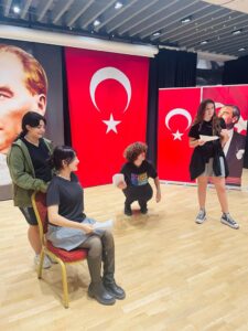 Lise İngilizce Drama Topluluğu öğrencilerimiz, yıl sonunda sahnelemeyi planladıkları tiyatro oyununun provalarına devam ediyorlar. Drama ile bağlantılı rol yapma, sahne yönetimi, algı ve iletişim becerilerinde profesyonel anlamda gelişim sergiliyorlar.