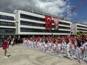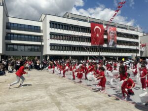 MEV Koleji Özel İzmir Bornova Okulumuzda 23 Nisan Ulusal Egemenlik ve Çocuk Bayramımızı coşkuyla kutladık. Bir hafta boyunca çeşitli etkinliklerle yapılan kutlamaların son gününde velilerimizin de katılımıyla güzel bir tören gerçekleştirdik. 23 Nisan Çocuk Şenliğimiz Anaokulu İlkokul Ortaokul Müdürü Koordinatör Müdürümüz Rasim Aydoğuş’un konuşmasıyla başladı. Ardından çocuklarımız velilerimize nefis bir dans gösterisi yaptı. Müzik öğretmenlerimizin Beden Perkisyonu Gösterisi ile devam eden şenliğimiz avluda hazırlanan etkinlik istasyonlarımızdaki eğlencelerle devam etti. Öğrencilerimiz, Çok Amaçlı Salonumuzda velilerimize muhteşem bir müzik ziyafeti sundu.