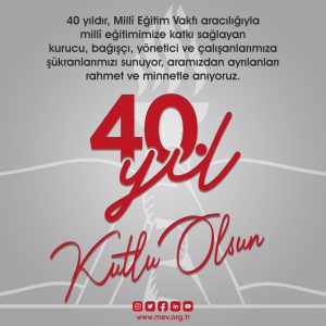 Milli Eğitim Vakfımızın 40’ıncı kuruluş yıldönümünü kutluyor, kuruluşunda ve sonrasında bu kutlu meşalenin taşınmasında emeği olan tüm MEV Yönetim ve Denetim Kurulu üyelerine, bağışçılarına ve çalışanlarına teşekkür ediyoruz. Aramızdan ayrılan tüm Vakıf emekçilerini rahmetle anıyoruz.