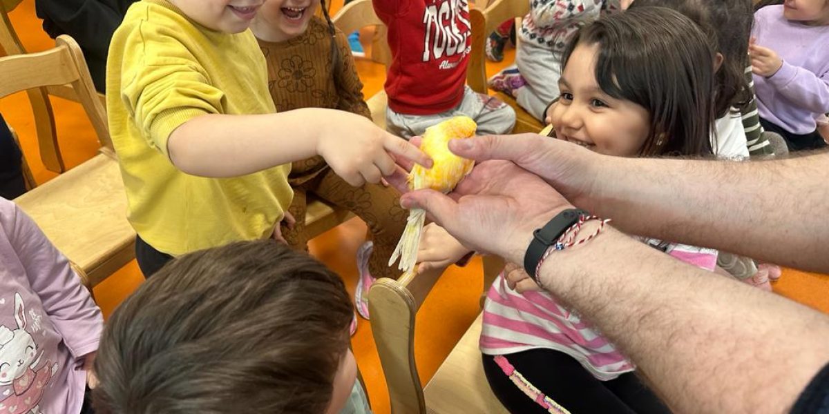 Anaokulu çocuklarımız Mart ayı GEMS teması kapsamında yumurtalar konusunda çeşitli araştırmalar yaptılar. Hobisi kuş yetiştirmek olan ve kanaryalara özel ilgi duyan Halil Topuzöz’ün katılımıyla, kuş türlerini ve yumurtalarını yakından tanıma fırsatı yakalayan öğrencilerimiz, kanaryaların büyüme aşamaları, beslenme şekilleri, yaşadıkları ortam hakkında ayrıntılı bilgi edindiler. Sunum sonrasında iki minik kanarya sınıfımıza konuk oldu. Minik kanaryaları sevip gözlemleme fırsatını bize sunduğu için Topuzöz’e teşekkür ederiz.