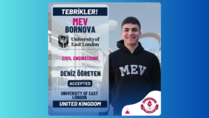 Cambridge International School akreditasyonu olan okulumuzun 12. sınıf Anadolu Lisesi öğrencilerinden Deniz Öğreten, Birleşik Krallık’ın 126 yıllık köklü ve prestijli üniversitelerinden biri olan University of East London’dan kabul aldı. İngiltere’nin Londra şehrinde bulunan, 1898 yılında kurulan üniversitenin Civil Engineering (İnşaat Mühendisliği) bölümüne kabul edilen öğrencimiz Öğreten’e başarılar diliyor, öğretmenlerini ve velilerimizi tebrik ediyoruz.