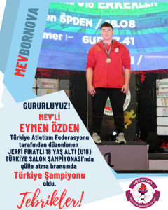 Öğrencimiz Eymen Özden, Türkiye Atletizm Federasyonu tarafından düzenlenen Jerfi Fıratlı 18 Yaş Altı (U18) Türkiye Salon Şampiyonası’nda gülle atma branşında Türkiye Şampiyonu olarak bir kez daha zirveye çıktı! 🏆