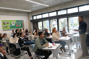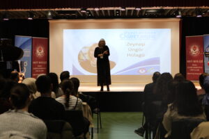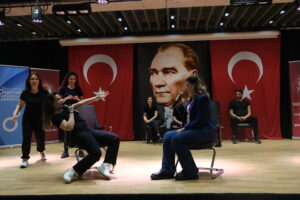 Okulumuzda, Öğretmen Kulübü iş birliği ile; 23 Kasım 2024 tarihinde “Öğretmenden Öğretmene Deneyim Paylaşım Sempozyumu”nun ikincisini gerçekleştirdik. Öğretmen ve öğretmen adaylarının mesleki ve kişisel gelişimine katkı sağlayacak deneyimli öğretmenler ile buluşarak, eğitim öğretim alanındaki farklı yöntem/teknikler ile tanışmaları ve mesleki farkındalıklarının artırılmasını amaçlanan sempozyum, okul öncesi ve sınıf öğretmenliği alanlarında okuyan öğretmen adayları ile tüm öğretmenlerin katılımına açık düzenlendi. Okulumuzun Koordinatör Müdürü Rasim Aydoğuş’un açılış konuşmasıyla başlayan sempozyumda 300 öğretmen adayı ve 80 kolaylaştırıcı yer aldı; 8 farklı kurum standı, 24 farklı atölye, çeşitli söyleşi ve panel düzenlendi. Duayen öğretmenlerinden Zeynep Hülagü, sempozyumda “Öğretmen Olmak” başlığı ile bir sunum gerçekleştirdi. İzmir’de yüzlerce öğretmene ve binlerce öğrenciye ve ebeveyne dokunmuş Zeynep Öğretmenimizin anlattığı deneyimleri salonda ilgiyle dinlendi, zaman zaman duygusal anlar yaşandı. Emeği geçen tüm paydaşlarımıza teşekkür ediyoruz.