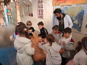 1. sınıf öğrencilerimiz Meraklı İşler iş birliğiyle 60 milyon yıl önce yaşamış canlılara ait fosil örneklerini ve orada yer alan panolarda sergilenen canlıların uzun soluklu yolculuğunu gözlemlemek amacıyla ‘’Tabiat Tarihi Müzesi’ni ziyaret etti. Müzede ‘’Fosil Meraklısı’’ etkinliğini gerçekleştiren öğrencilerimiz, kağıt üzerine baskı çalışması yaptılar. Öğrencilerimiz, kayaçlar hakkında bilgi edindiler ve kayaç türlerini incelediler.